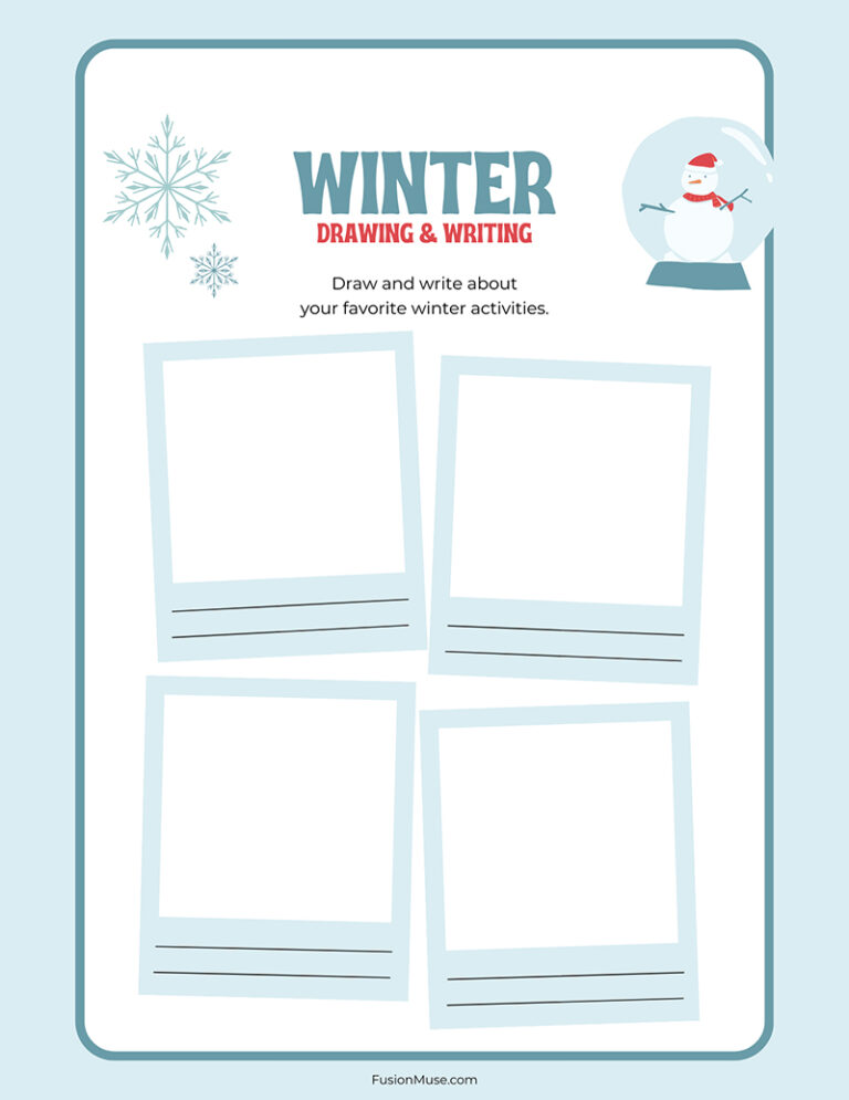 Kids get to celebrate everything they love about winter in this creative drawing and writing activity. From snowball fights to hot cocoa breaks, they can sketch their favorite moment and describe it in their own words. It is a cozy way to blend art and literacy during the colder months.