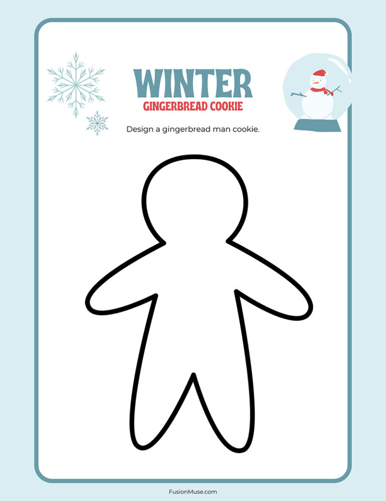 Winter Themed Gingerbread Man Cookie Drawing and Coloring Page